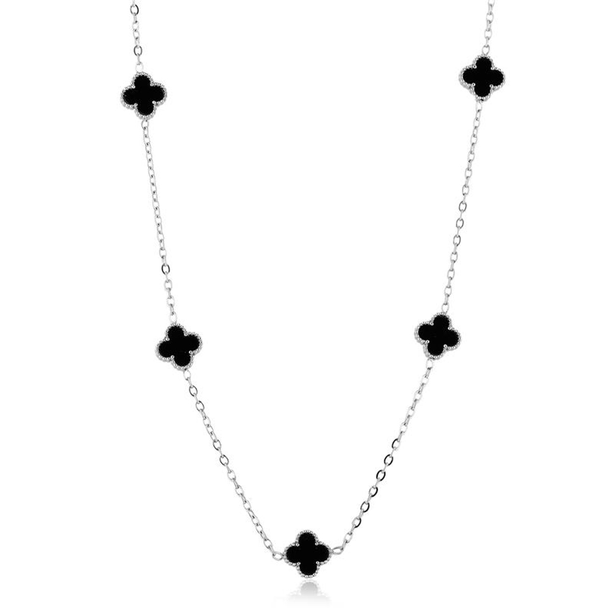 Colar Trevo Cleef Preto de Aço Inoxidável - 45cm